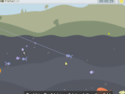 Вы - девушка, которая стоит на берегу и ловит рыбу. Трудности бросают вызов. Рыбачьте, но не ловите рыбу неподходящего размера. Вытаскивая рыбу, избегайте, чтобы она была съедена другой рыбой или морским животным. Игрок получает монеты за ловлю рыбы и может потратить их на новую приманку и удочку. |