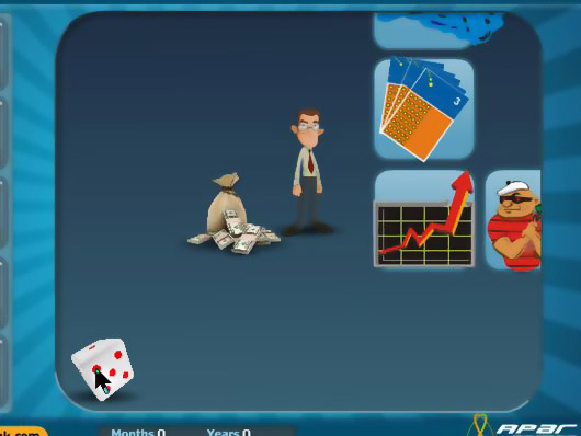 Всегда хотели быть миллионером? В этой настольной бизнес игре вы можете проверить ваши финансовые знания. Выбирайте куда инвестировать Ваши свободные средства. Как только вы инвестировали средства, бросьте игральные кости и проверьте ваше везение на рынке. В игре Вам доведется сталкиваться с пожарами, наводнениями, сюрпризами, непредвиденными расходами, грабителями. Играйте в игру пока ваш баланс не достигнет миллиона. Не позволяйте ему опустится до нуля, иначе вы станете банкротом.