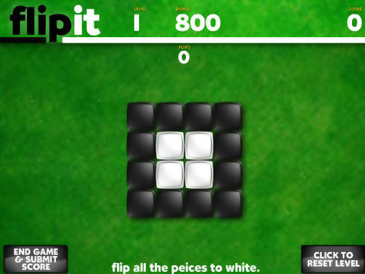 Ваша цель в этой логической игре - сделать все части белыми. При помощи мышки кликайте по ним, и соседние с ними части будут менять цвет на противоположный. Концепция этой игры не нова, и подобные игры были уже много раз, но эта игра отличается от других отличной анимацией и звуком. Наслаждайтесь!