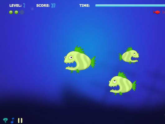 Рыбы разного размера появляются на экране. Игрок должен кликнуть на более крупной рыбе так быстро, как только он может. По мере прохождения игры это становится делать все труднее.